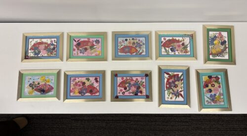 1回目はボールペンとしおり、2回目はお正月にも飾れるアート額、3回目はペンダントやキーホルダーにもなるチャームづくりをしました。(画像は2回目のアート額)